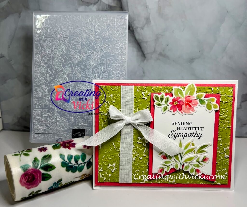 The Stone & Vine 3D Embossing Folder makes such a beautiful background. I especially love it with the Two-Tone Old Olive 12X12 Cardstock I used here. I think it pairs really well with the Extraordinary Flora Washi Tape used in this card, and this is NOT your grandmothers washi tape. This is NEXT LEVEL, with a coordinating die to cut out each image!